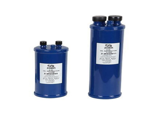 油分離器,其作用是將制冷壓縮機(jī)排出的高壓蒸汽中的潤滑油進(jìn)行分離,以保證裝置安全高效地運(yùn)行。根據(jù)降低氣流速度和改變氣流方向的分油原理,使高壓蒸汽中的油粒在重力作用下得以分離。一般氣流速度在1m/s以下,就可將蒸汽中所含直徑在0.2mm以上的油粒分離出來。通常使用的油分離器有洗滌式、離心式、填料式和過濾式四種。